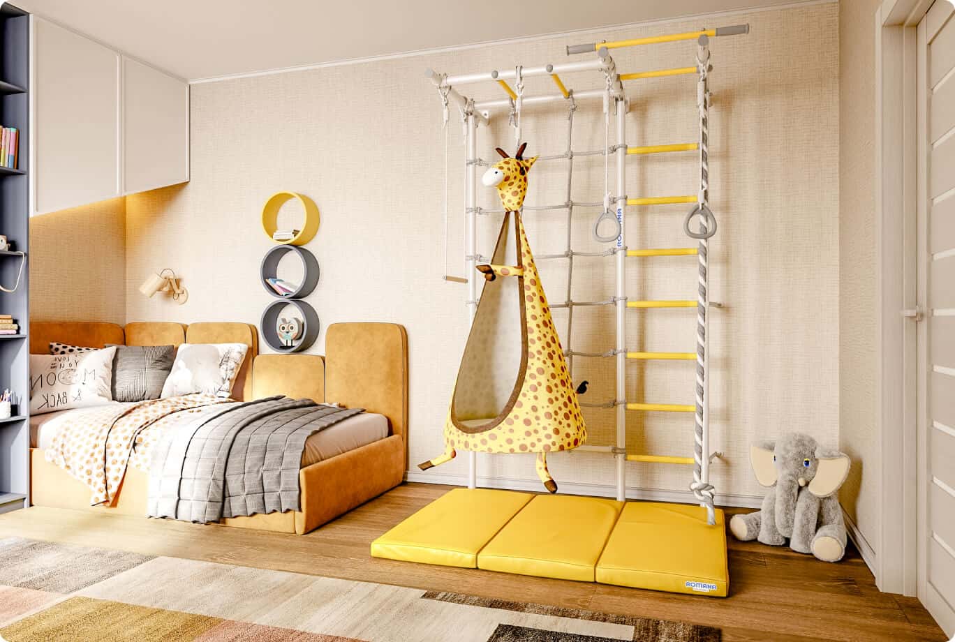 Pro ještě větší bezpečnost je možné dokoupit také ochrannou žíněnkovou matraci, která pomáhá snižovat riziko zranění při pádu. Je vyrobena z odolných materiálů, snadno se čistí a svým designem potěší děti i dospělé.