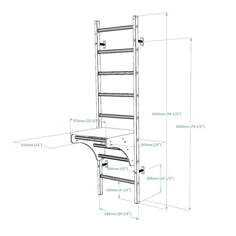 - Gymnastický rebrík : (8 drevených priečok a dve vertikálne kovové profily 50 mm x 40 mm)